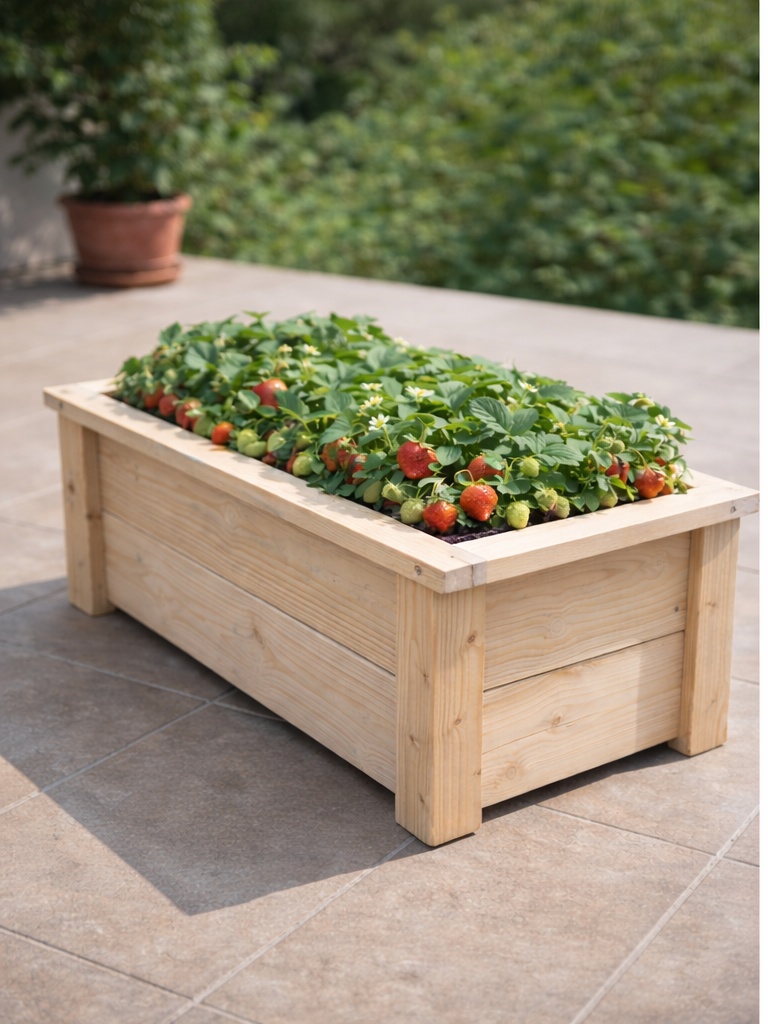 A precíz kialakítás és a természetes faanyag harmonikus összhatást teremt, így a virágláda nemcsak praktikus, hanem dekoratív eleme is lesz a környezetének.