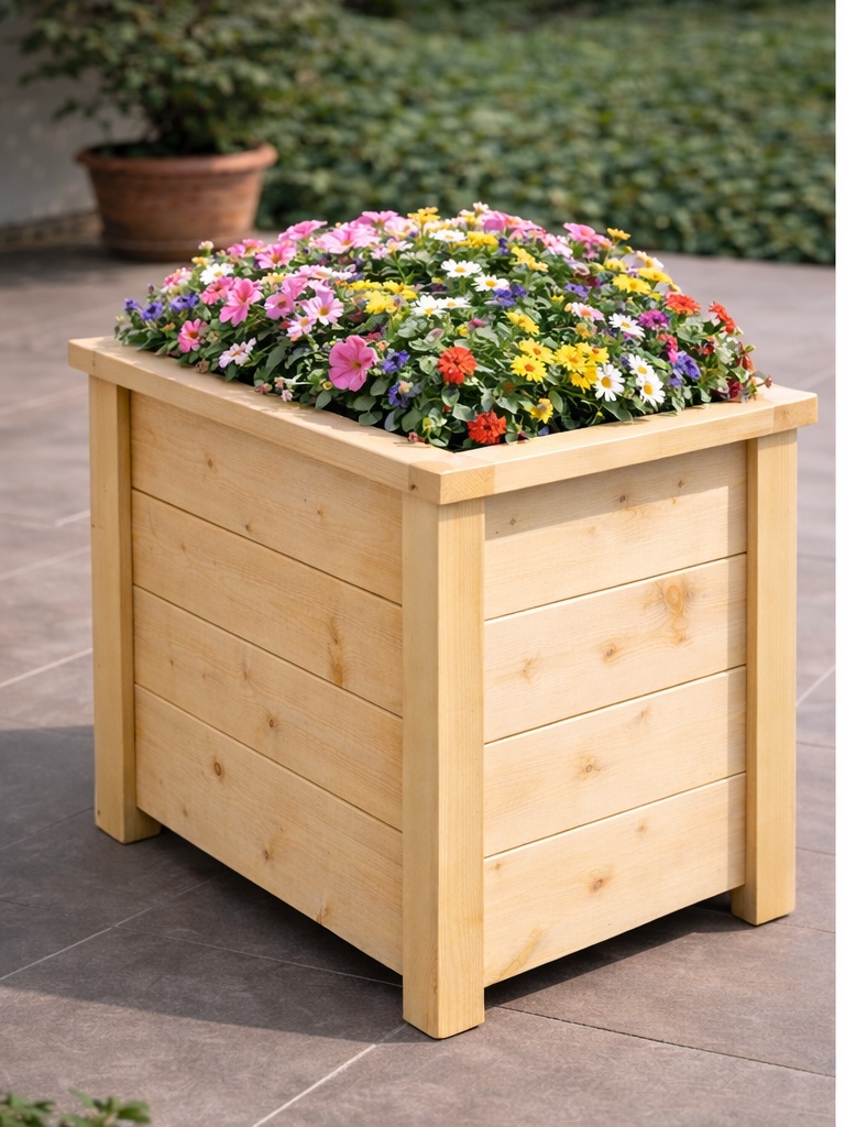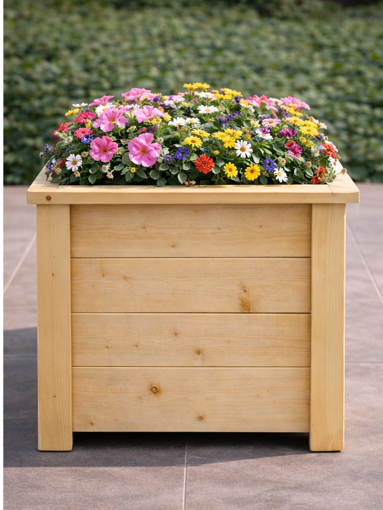 A precíz kialakítás és a természetes faanyag harmonikus összhatást teremt, így a virágláda nemcsak praktikus, hanem dekoratív eleme is lesz a környezetének.